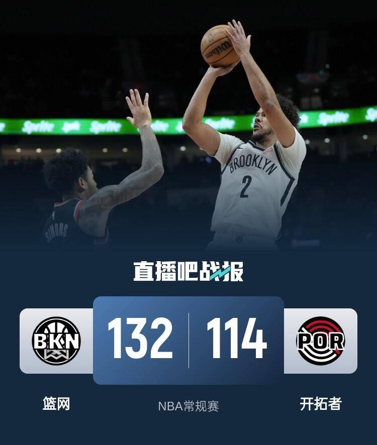 比赛开始,篮网接连三分打出8-2开局,随后篮网全民皆兵建立主动权,亨德森站出来里突外投,单节6投全中轰下17分带队追分,拉塞尔接连三分助篮网首节领先10分,次节双方继续展开拉锯战,卡马拉单节里突外投得分上双带队追分,篮网众将能回应,半场篮网继续领先5分。下半场,卡梅隆-约翰逊和克洛尼一内一外连续取分,夏普和安芬尼-西蒙斯能联手回应,双方继续拉锯战,三节篮网还领先10分,末节夏普接连突破带队追分且得分上双,篮网总能回应,拉塞尔有攻有传带队牢牢掌握着十几分领先,克林根最后时刻再伤退,最终篮网132-114力克开拓者,终止5连败同时送对手3连败。