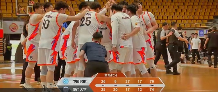 末节决战,郑博文和樊宇琦先后命中三分,中国民航大学频频冲击内线得手强势回应,双方比分交替领先,争夺陷入白热化,关键时刻崔雍鑫连中两球,王维越篮下得手将分差拉开到5分杀死比赛。最终,中国民航79-74大学力克厦门大学。