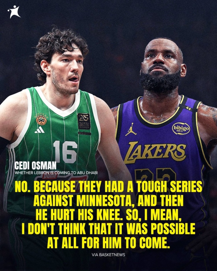 5月23日讯 近日,帕纳辛纳科斯前锋切迪-奥斯曼表示他未邀请前骑士队友勒布朗-詹姆斯来到阿布扎比观看2025年欧洲篮球联赛四强赛。