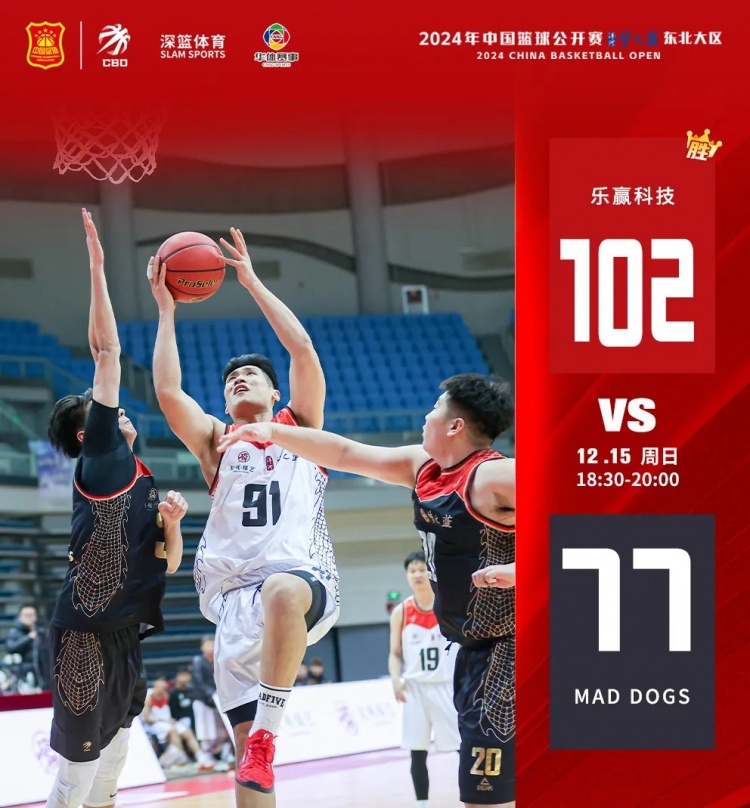 本场比赛乐赢科技延续昨晚良好状态,上半场1号胡崟萌即带领队友展开有条不紊的进攻,MAD DOGS在攻防两端表现积极,33号靳泽坤半场得分即上双,表现亮眼,半场结束双方分差仅4分。下半场开始双方展开拉锯,你来我往,比分交替上升,直至第四节,受体能影响,MAD DOGS未能顶住压力,遭乐赢科技狂轰30分,本场比赛最终比分102-77,乐赢科技获得胜利。