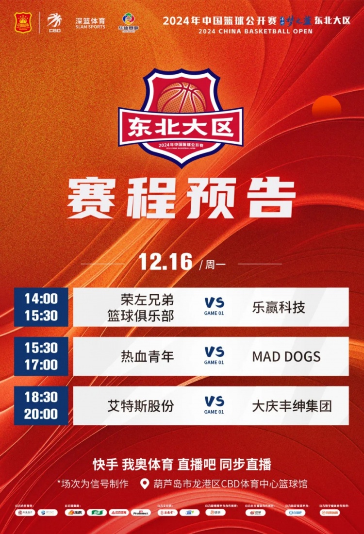 12月15日,2024年中国篮球公开赛洋河梦之蓝东北大区赛第二比赛日精彩纷呈,艾特斯股份取得首胜;大庆丰绅集团、乐赢科技拿下2连胜。第二比赛日比赛情况如下: