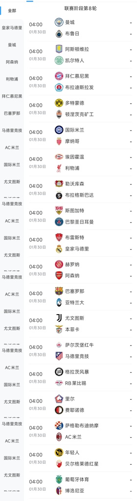 确定晋级16强或附加赛球队:阿森纳、维拉、亚特兰大、马竞、拜仁、布雷斯特、凯尔特人、多特、费耶诺德、国米、尤文、勒沃库森、里尔、米兰、摩纳哥、皇马