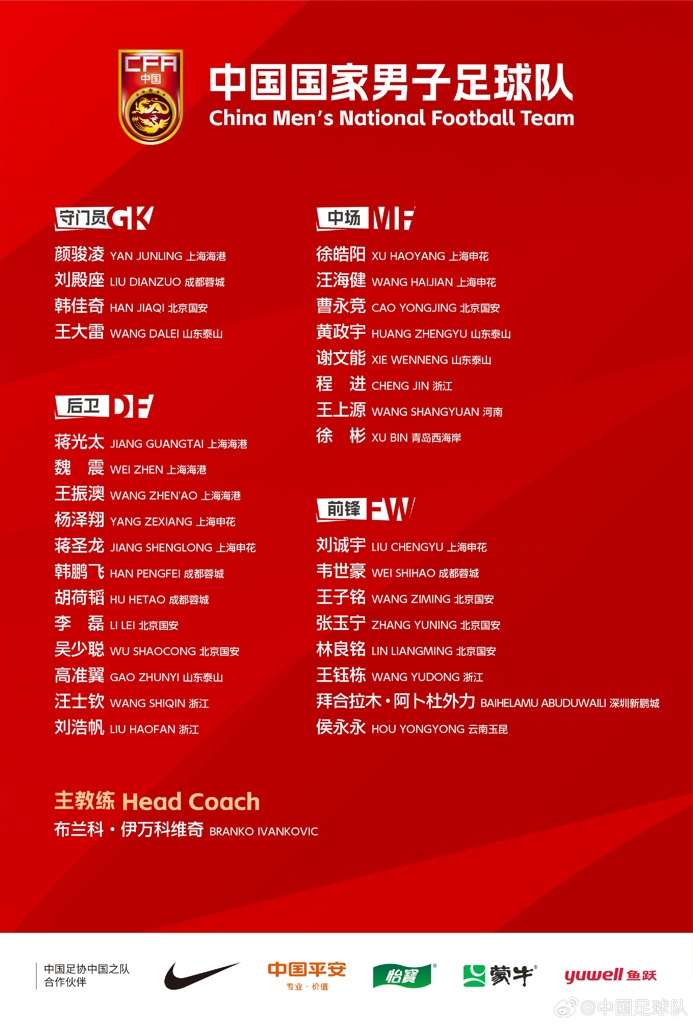 3月1日讯 国足公布新一期32人集训名单,恒大足校出品的青岛西海岸中场徐彬入选。他也是恒大足校出品的首位男足国脚。