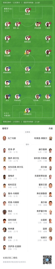 首回合,葡萄牙客场0-1不敌丹麦。本场胜者将在半决赛中对阵德国vs意大利的胜者。