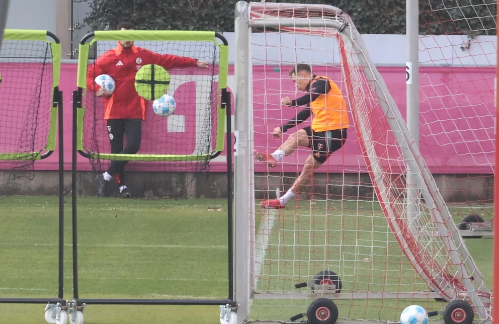 4月3日讯 《图片报》报道,拜仁周三进行了特殊的角球训练,教练组启用了带霓虹黄靶心的移动球网系统,基米希则进行了测试。