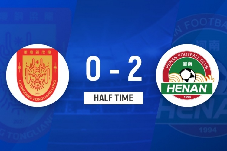 伤停补时4分钟。上半场比赛结束,重庆铜梁龙0-2河南。