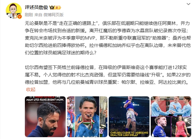 5月30日讯 评述员詹俊发文,对目前英超足坛几支队伍的近况发表了看法。