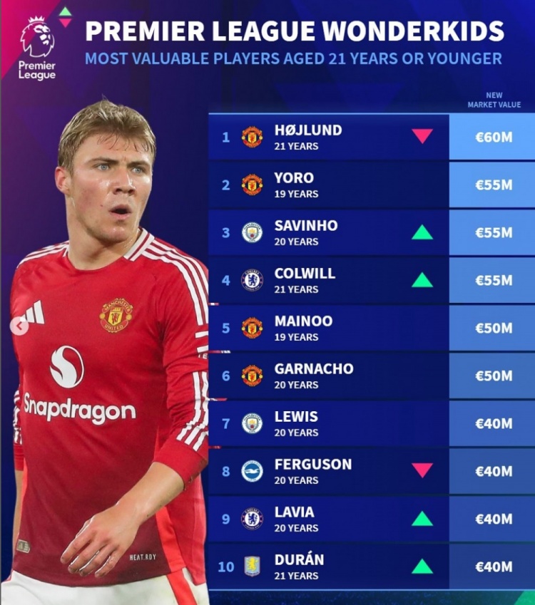 12月17日讯 《转会市场》在今日更新了英超球员身价,并列出了U21球员身价榜,曼联4将在列。