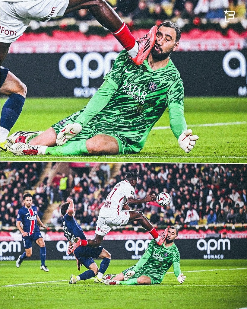 12月19日讯 法甲第16轮,巴黎vs摩纳哥。比赛第18分钟,摩纳哥后卫辛格突入禁区,鞋钉结结实实踩在了多纳鲁马脸上,主裁判没有表示。比赛第22分钟,多纳鲁马被替补门将萨福诺夫换下。
